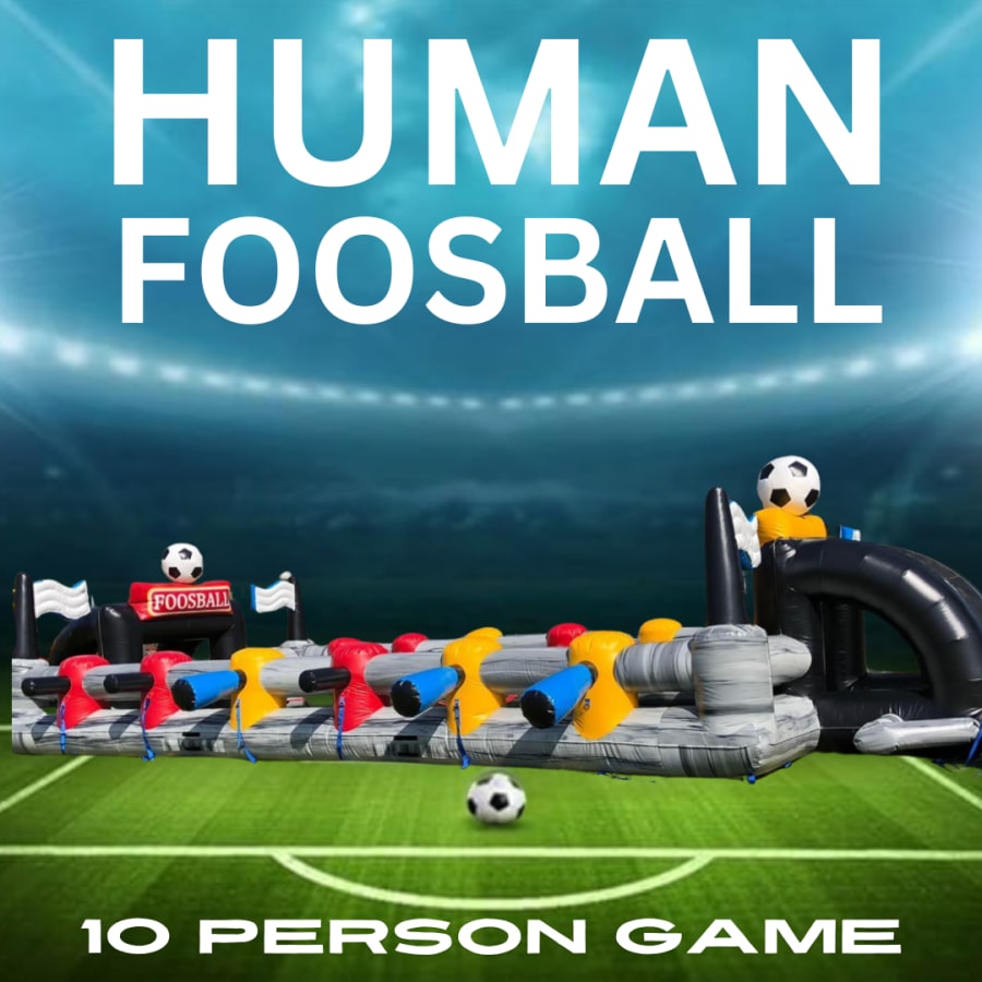 Our Human Foosball inflatable is inspected and insured. Staff handle delivery, inflation, and supervision when requested. You get a safe, managed activity that keeps guests moving and smiling. 😊
