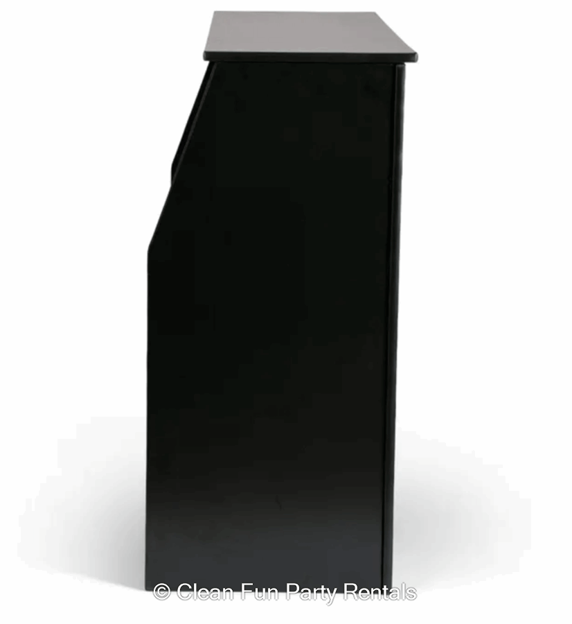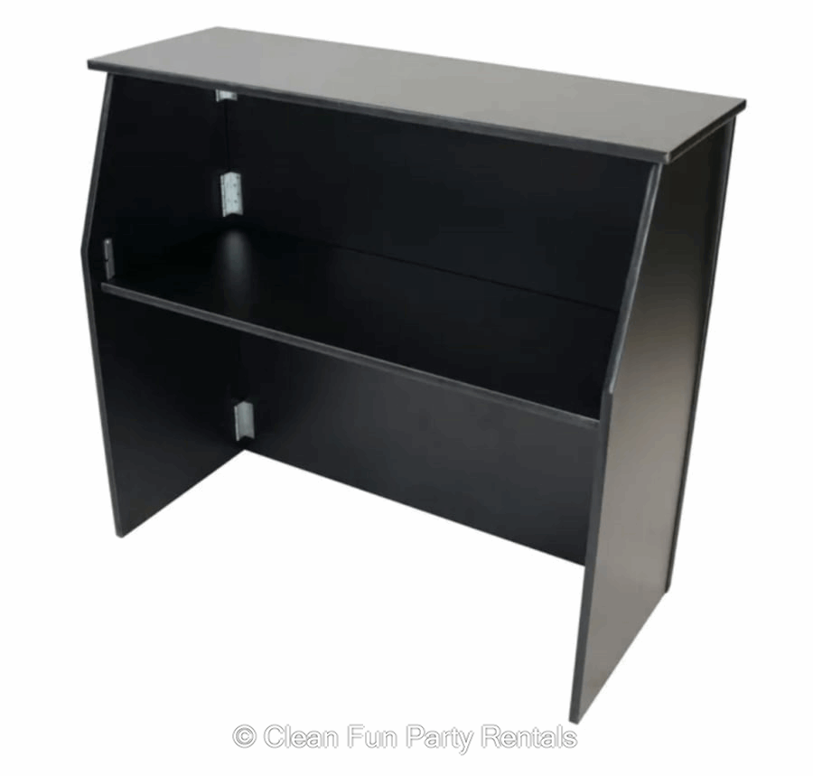 Serve guests with style. The Portable Serving Bar is a high-pressure laminated wood bar with vinyl edging. It folds up for transport. It opens into a full-sized Serving Table for parties, tailgates, and pop-up events. Generous storage runs across the backside. Durable, sleek, and ready to elevate service. Keywords: Portable Bar, Serving Bar, Bar Table, Bar, Serving Table.