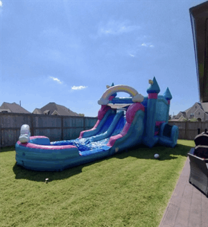 Pink, purple, and castle-shaped water slides are a dream come true for little princesses. Add crowns, tiaras, and a royal “splash zone” for a magical touch.